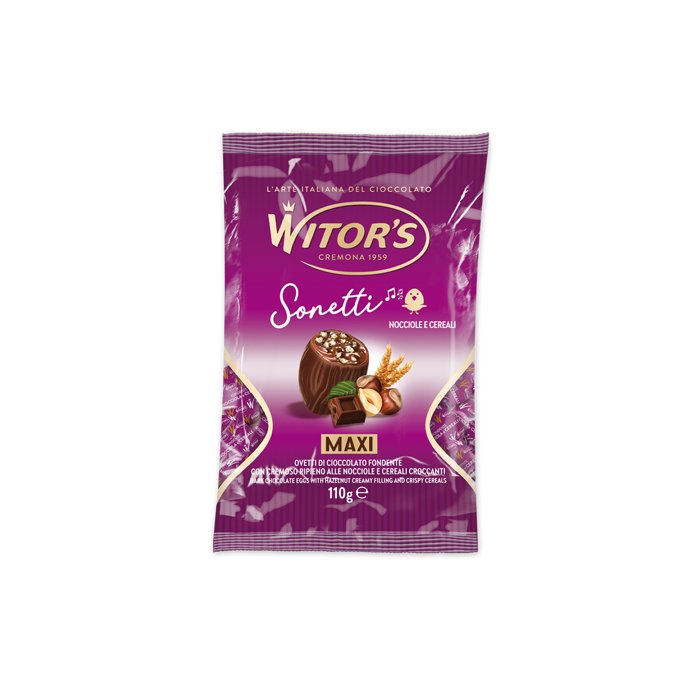Un guscio di cioccolato fondente racchiude un morbido ripieno di crema alle nocciole e cereali croccanti, questi ovetti sono perfetti per grandi e piccini.