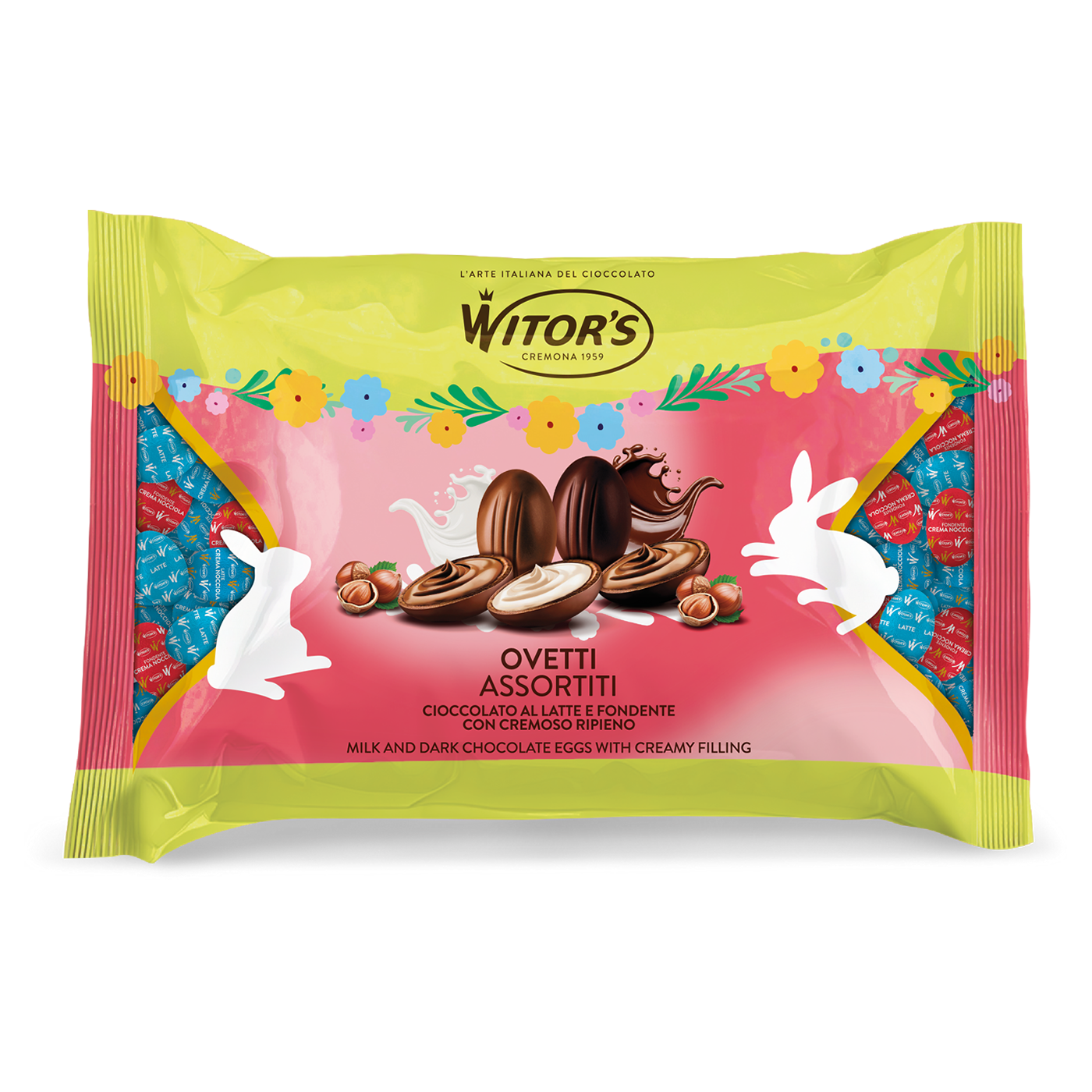Un guscio di cioccolato al latte racchiude un morbido ripieno di crema di nocciola e cereali croccanti, questi ovetti sono perfetti per grandi e piccini.