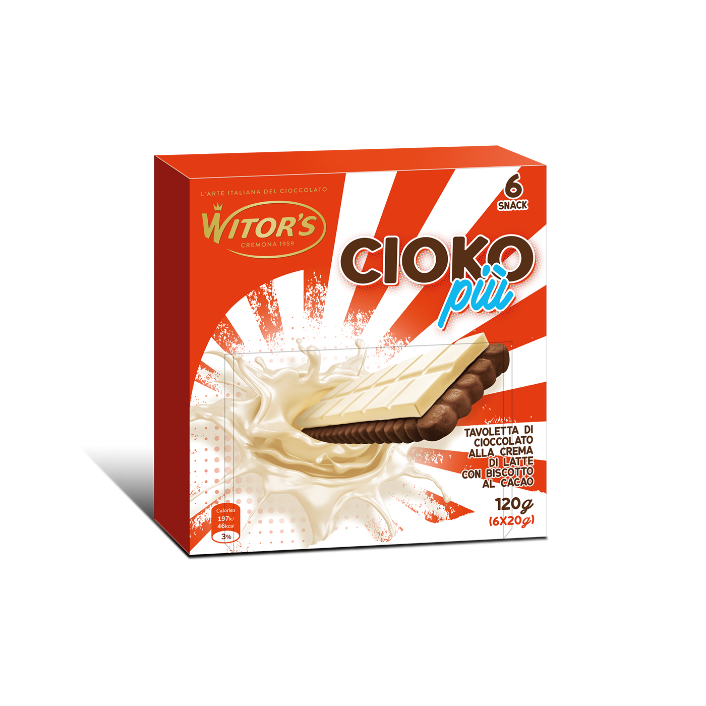 Gustoso biscotto croccante al cacao unito ad una tavoletta di deliziosa crema al latte. Uno snack fatto con ingredienti di prima scelta, per una pausa leggera e gustosa.