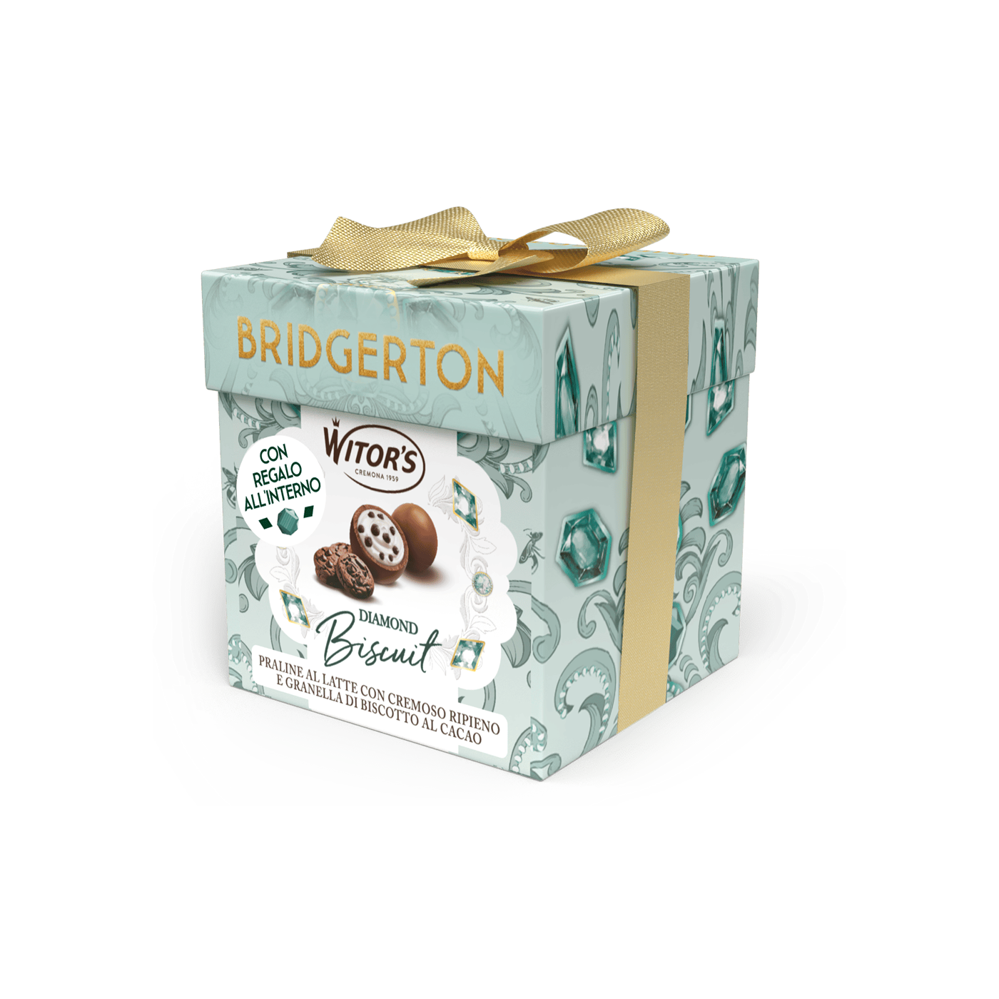 Il vero Diamante della stagione, un'elegante pralina di cioccolato al latte con crema al latte e granella di biscotti che saprà fare cadere tutti in tentazione.