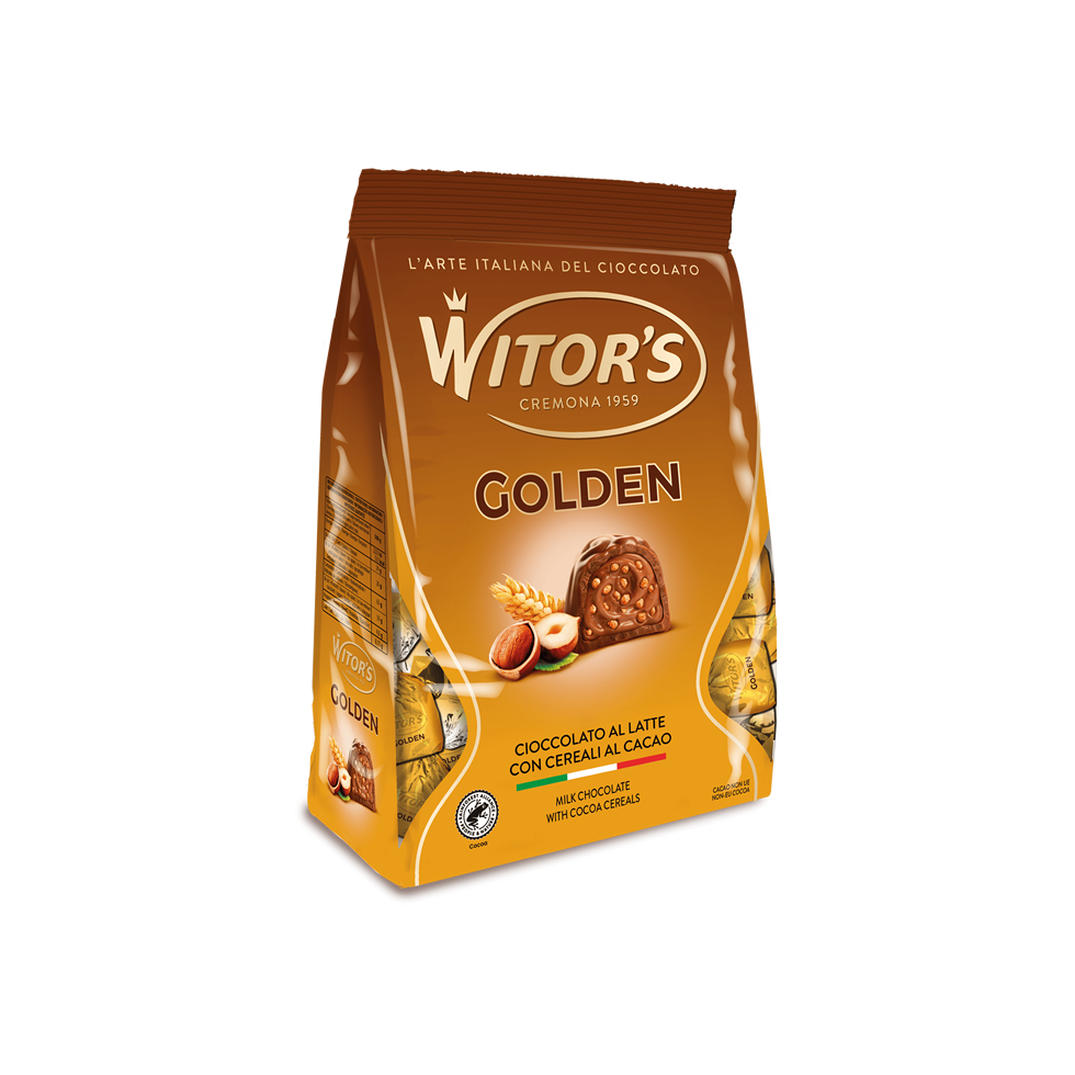 PRALINE DI CIOCCOLATO AL LATTE (cacao: 30% minimo) CON CREMOSO RIPIENO ALLA NOCCIOLA E CEREALI CROCCANTI. Ingredienti: zucchero, grassi vegetali (cocco, palmisti, palma, - in proporzione variabile), pasta di cacao, latte intero in polvere, burro di cacao, cereali croccanti (4,7%) (farina di mais, farina di riso, zucchero, farina di frumento, cacao in polvere, siero di latte in polvere, sale), siero di latte in polvere, lattosio, cacao magro in polvere, nocciole (0,5%), emulsionante: lecitina di soia, aromi. Può contenere tracce di altra frutta a guscio e uova.