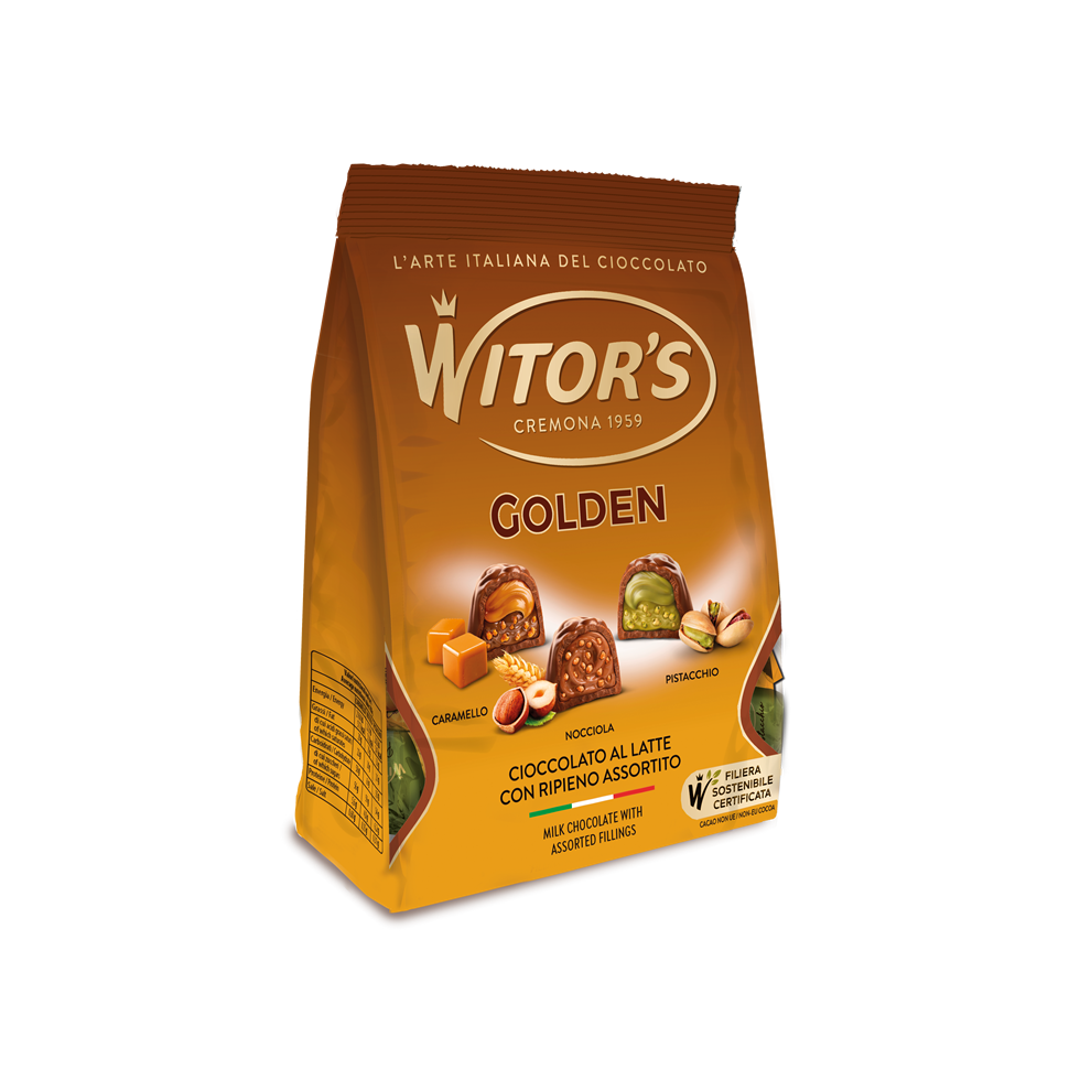CARAMELLO - Ingredienti: zucchero, caramello con burro salato (16%) (sciroppo di glucosio-fruttosio, latte condensato zuccherato, burro salato, zucchero, sale), grassi vegetali(cocco, palmisti), pasta di cacao, latte intero in polvere, burro di cacao, latte scremato in polvere, siero di latte in polvere, caramello croccante (3,5%) (zucchero, sciroppo di glucosio, burro, panna, sale, agente lievitante: bicarbonato di sodio), lattosio, cacao magro in polvere, zucchero caramellizzato(0,7%), emulsionante: lecitina di soia, aromi, colorante: estratto di paprica.