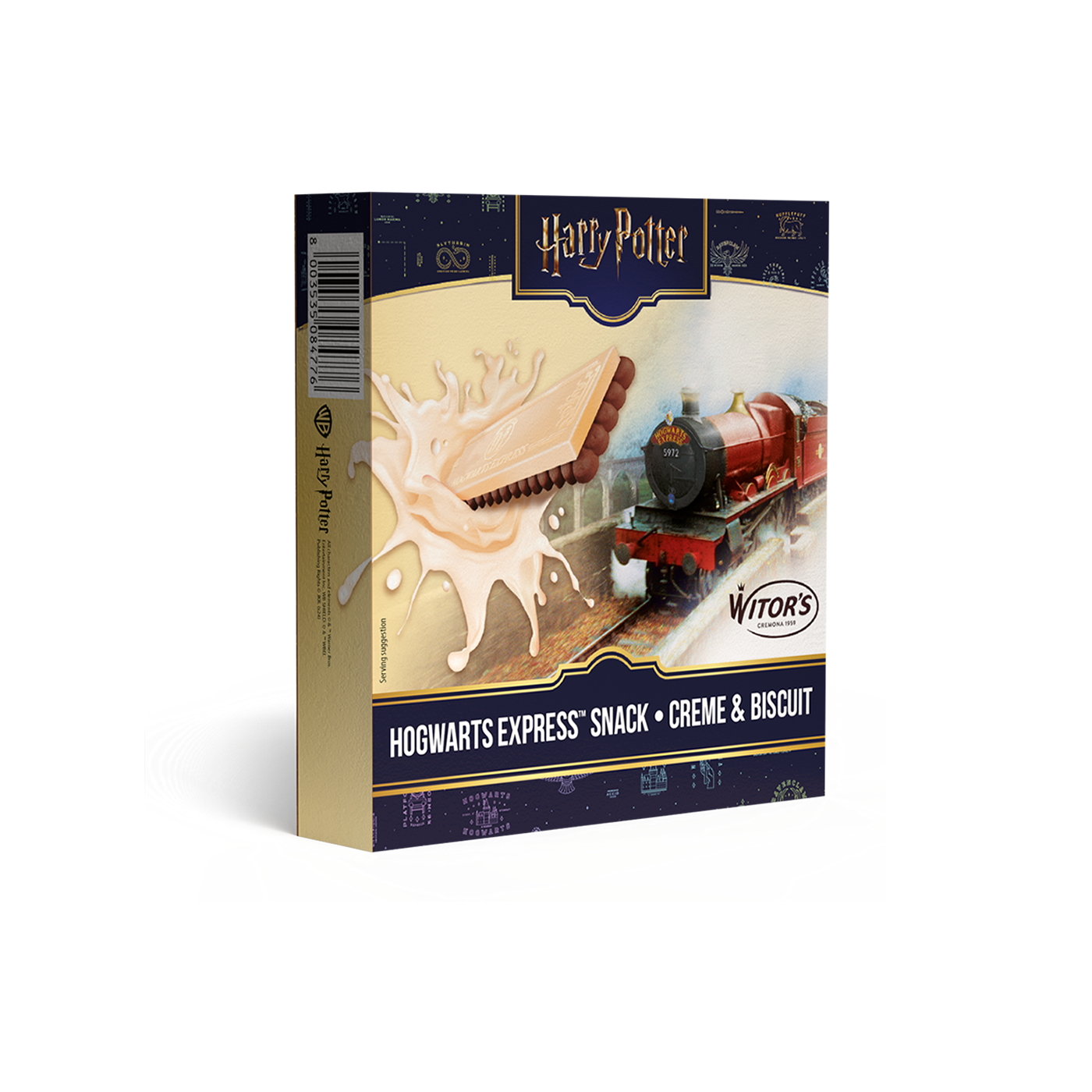 Un biscotto al cacao abbinato a una tavoletta di crema al latte. Un delizioso snack per rendere più dolce l’attesa del treno diretto a Hogwarts in partenza dal celebre Binario 9 e ¾.
