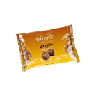 PRALINE DI CIOCCOLATO AL LATTE (cacao: 30% minimo) CON CREMOSO RIPIENO ALLA NOCCIOLA E CEREALI CROCCANTI. Ingredienti: zucchero, grassi vegetali (cocco, palmisti, palma - in proporzioni variabili), siero di latte in polvere, pasta di cacao, cereali croccanti (5%) (farina di mais, farina di riso, zucchero, farina di frumento, cacao in polvere, siero di latte in polvere, sale), burro di cacao, latte intero in polvere, nocciole (2%), cacao magro in polvere, latte scremato in polvere, emulsionante: lecitina di soia, aromi. Può contenere tracce di altra frutta a guscio, uova e glutine.