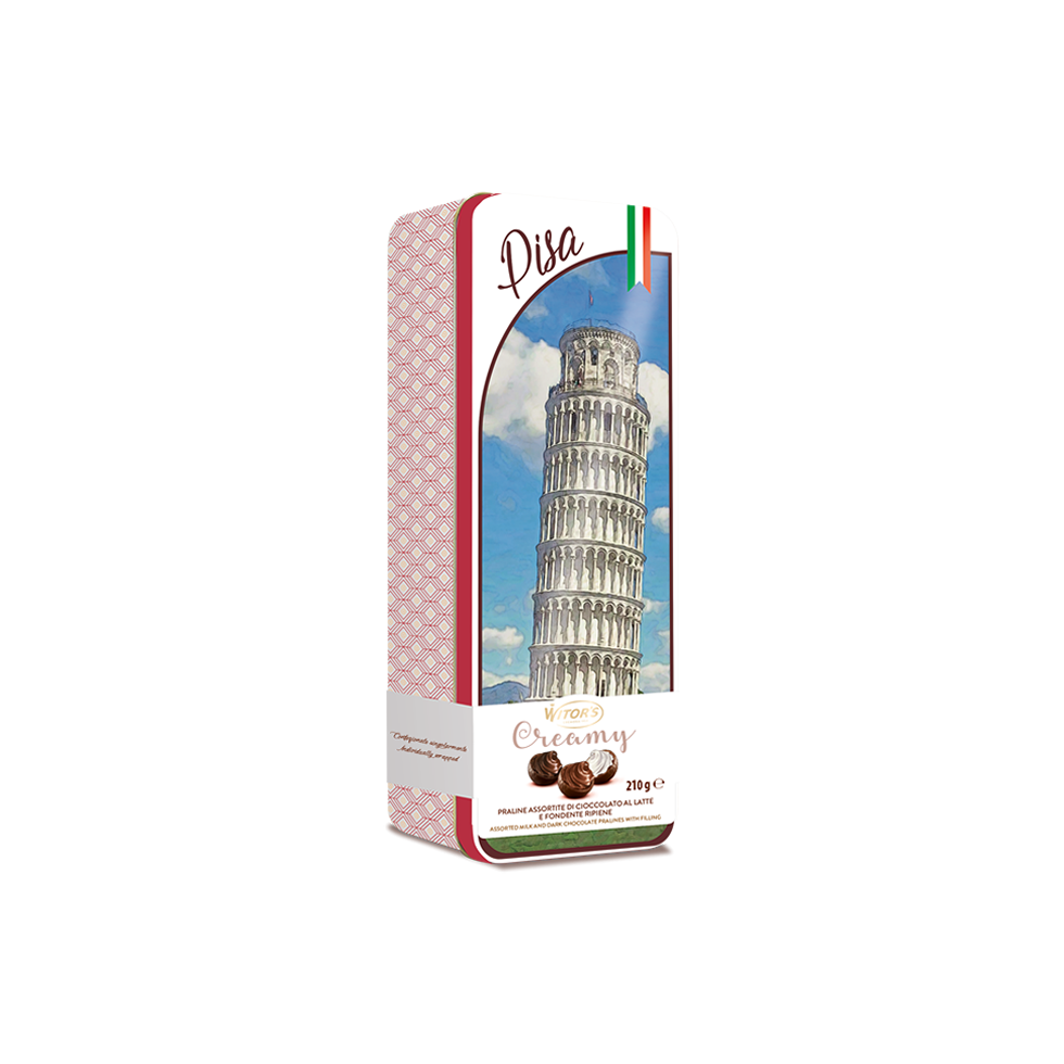 Scatola Torre d'Italia Pisa con praline Selection Creamy g210.